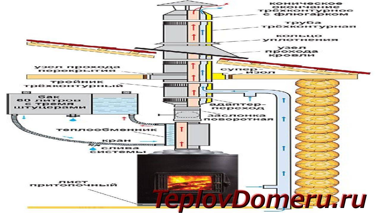 Схема позволит понять, сколько и каких труб понадобится для сборки дымохода
