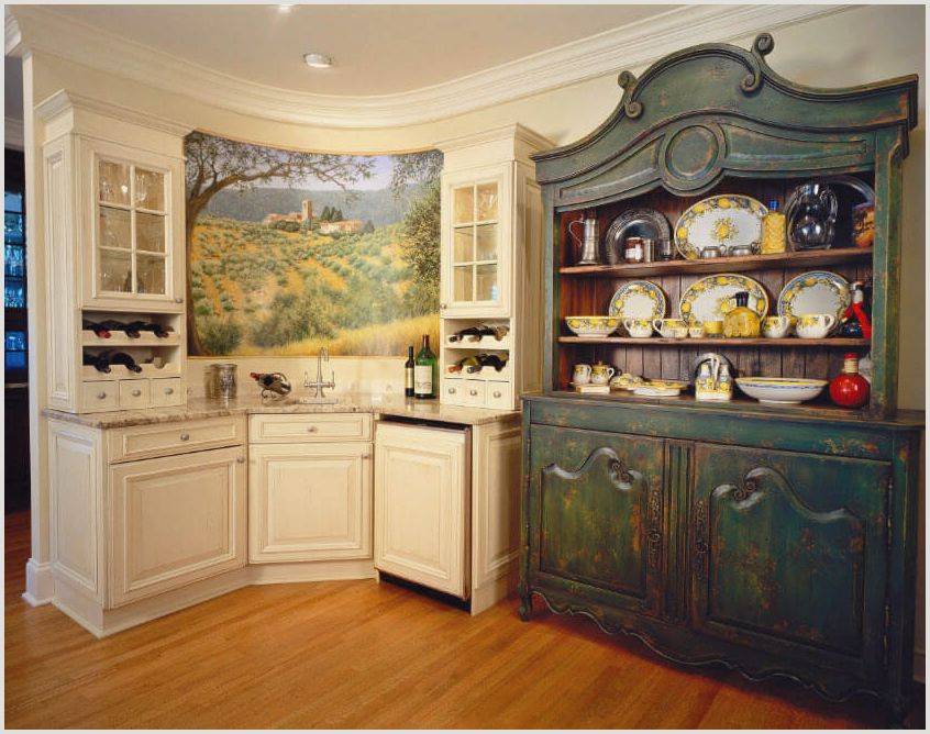 В традиционном дизайне может быть также красив в гостиной и без наличия стеклянных створок. В нем можно также хранить дополнительные комплекты посуды для гостей, салфетки и другой кухонный инвентарь.