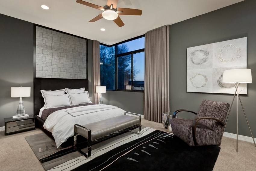 Учеными психологами давно доказано, что серый цвет действует на человека умиротворяюще и расслабляюще. Он будет идеальным для спальни, так как этот спокойный оттенок поможет восстановиться душевному равновесию и отдохнуть в гармонии. По мнению психологов, такой цвет подойдет как фоновое оформление спальни для людей, которые больше подвержены стрессам и прочим негативным факторам в течение дня.