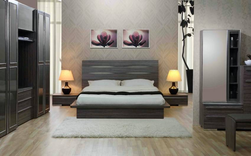 В спальне желательно акцентировать внимание на стильной меблировке либо текстиле, а оформление стеновых поверхностей лучше сделать приглушенным, не бросающимся в глаза, но и не скучным