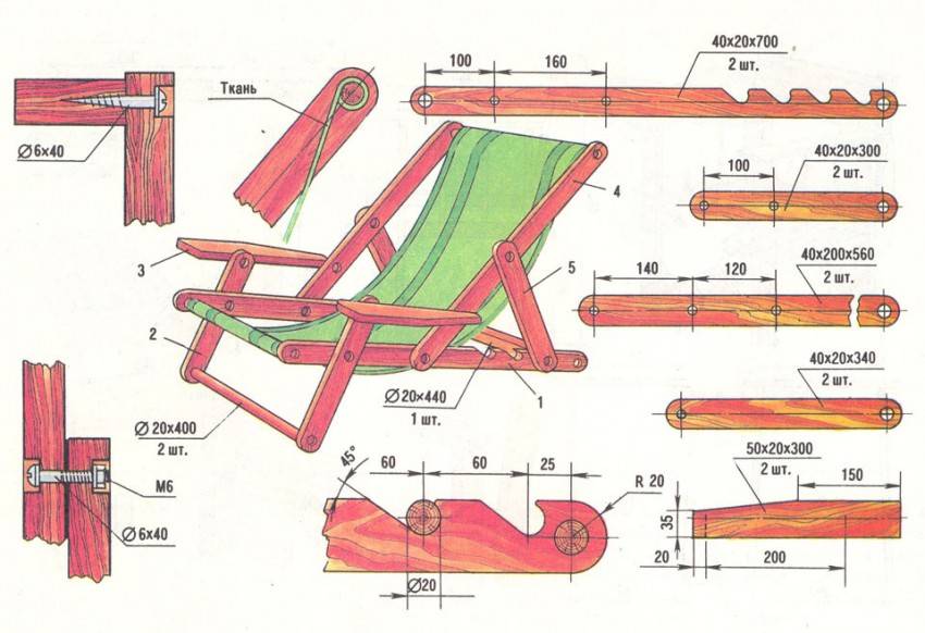 Для начала вам следует определиться с видом шезлонга. Он может быть изготовлен из дерева, алюминия, пластика и синтетических тканей. Мы остановимся на практичном и удобном в изготовлении варианте – шезлонге из дерева.