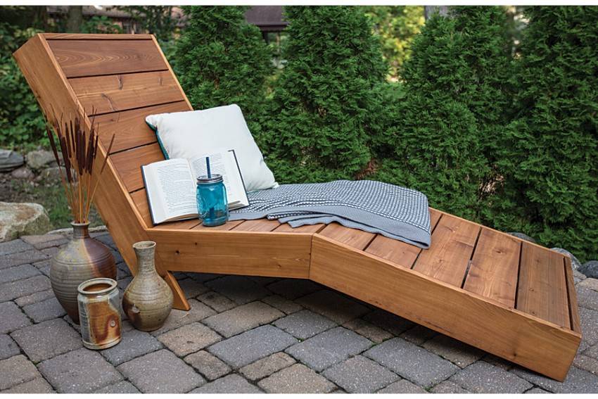 Выбирая древесину для будущего шезлонга, следует учесть физические и механические свойства определенных видов дерева. Например, бук, ясень, лиственница или дуб прослужат дольше всего. Это прочные и долговечные материалы, к тому же они имеют эстетичный внешний вид. Но такой вид древесины довольно дорогостоящий и по весу превосходит другие породы дерева, из-за чего готовые изделия сложнее перемещать.