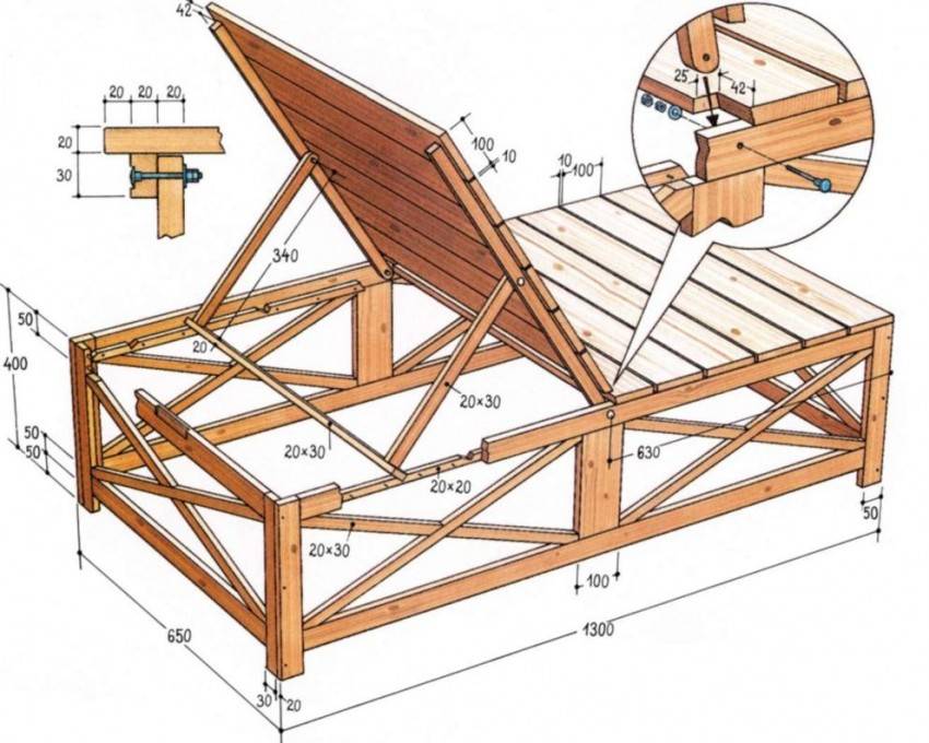 Шезлонги – это удобные легкие кресла, которыми часто оборудуют места для отдыха. Их устанавливают на пляжах и возле открытых бассейнов. Для дачи этот предмет может являться частью экстерьера. На нем вы сможете отдохнуть после насыщенного утомительного дня, искупаться в нежных лучах солнца или вздремнуть в затененном местечке вдали от человеческих глаз. В этой статье мы рассмотрим, как сделать шезлонг своими руками из дерева, продемонстрируем чертежи, а также фото и видео инструкции.