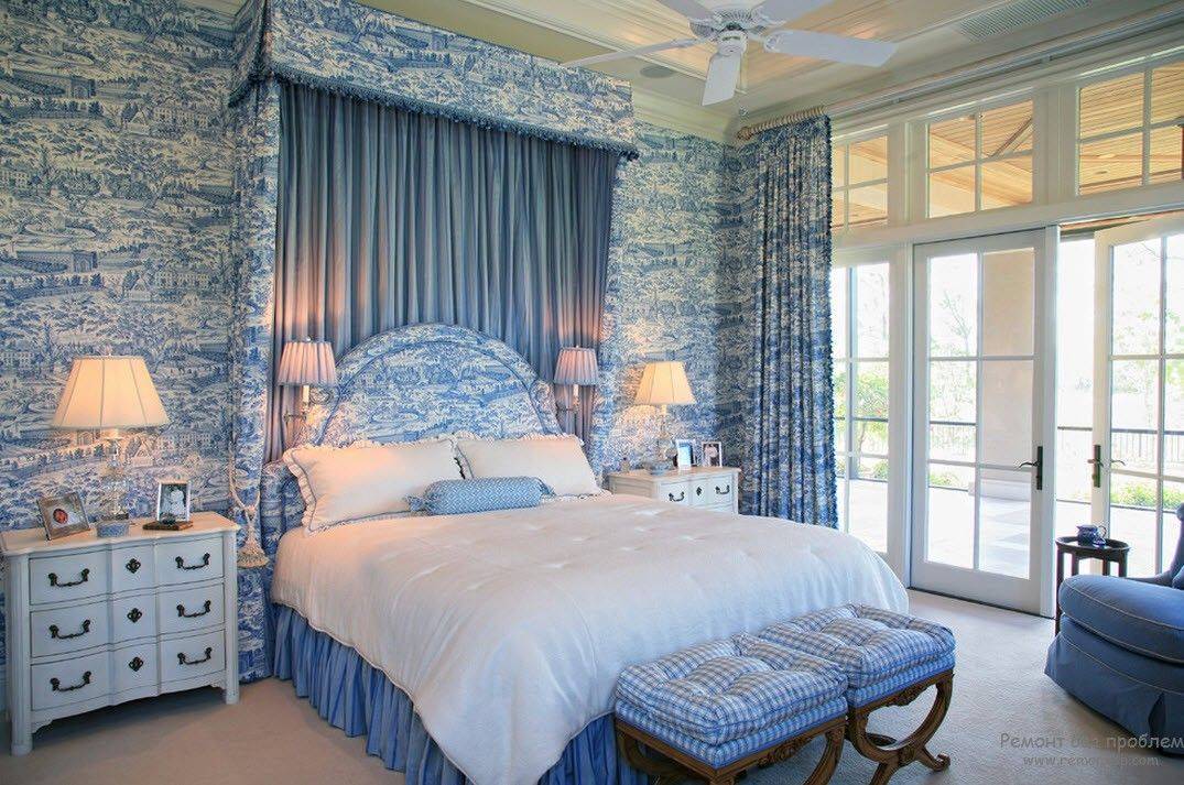 Обои для спальни в голубых тонах