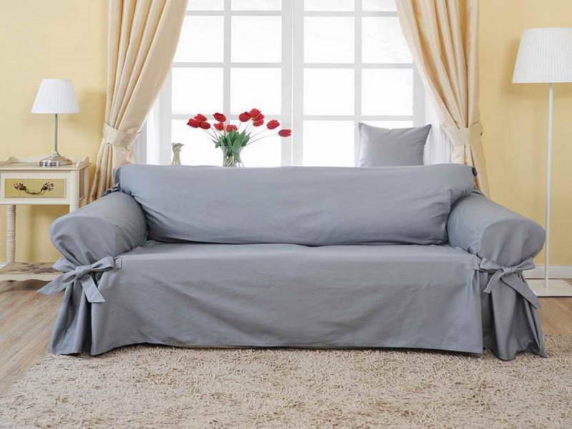 Украшение дивана серым чехломИсточник tkanix.guru/