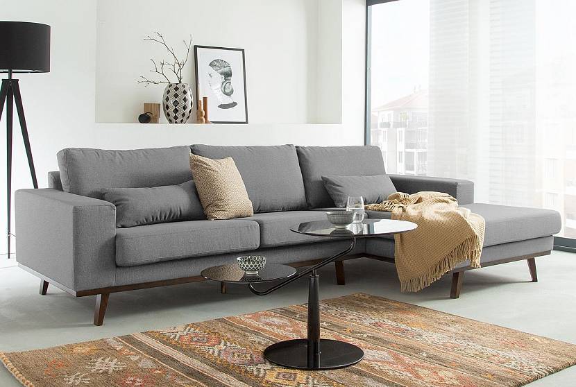 Здесь важно сделать упор на правильность сочетания: смешивание серого с теплыми тонами зачастую дает эффект «грязного» цвета. В этом случае предпочтительнее использовать цвета по отдельности: серый сделать основным фоном дивана, а желтый, красный, горчичный использовать для декоративных элементов (подушек, приставных пуфов, накладных подлокотников)