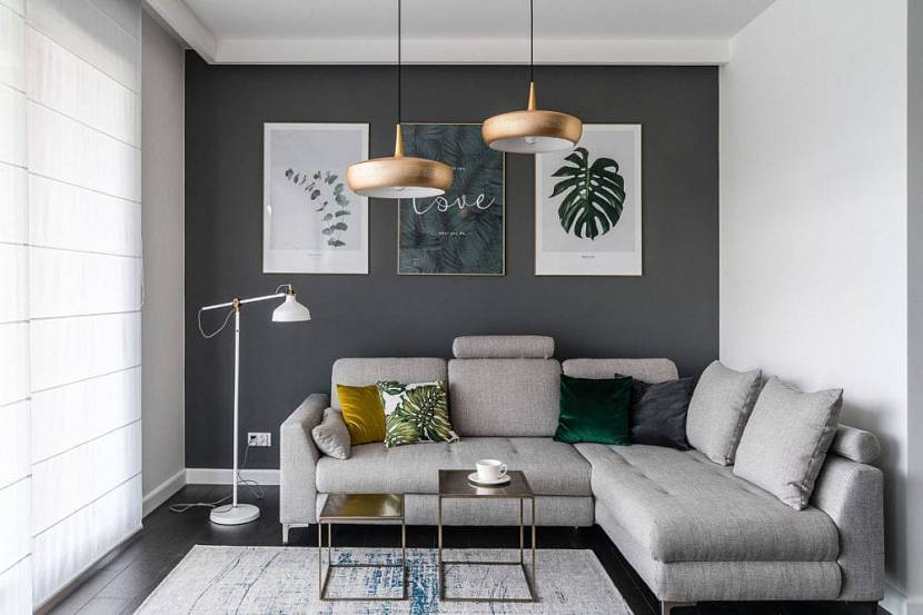 Разные оттенки серого в дизайне гостинойИсточник zen.yandex.ru/