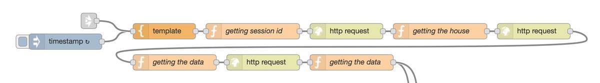 Дальше происходит магия из цепочки запросов, по итогам которых в последнем блоке getting the data мы получаем информацию о всех наших устройствах в ПЕРВОМ доме (да, если у вас несколько домов, то вам нужно будет выбрать его в блоке getting the House — не буду останавливаться подробнее т.к. думаю, что среди нас мало тех у кого больше одного дома в приложении).