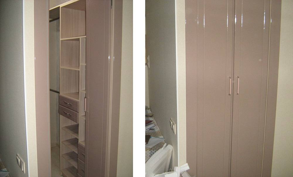 Выбирайте любой понравившийся вариант оснащения проема, который будет лучше всего вписываться в дизайн интерьера. Современные возможности индивидуального изготовления и огромный ассортимент готовых предложений позволяет исполнить практически любое решение. Но лучше обдумать возможные варианты до начала ремонта – как показывает практика, «подгон» проема в процессе отделки под готовые решения обойдется дешевле, чем индивидуальный заказ. Но, если есть весь нужный инструмент, необходимые навыки в сборке мебели и желание — обустроить кладовку в гардеробную своими руками не вызовет никаких проблем.