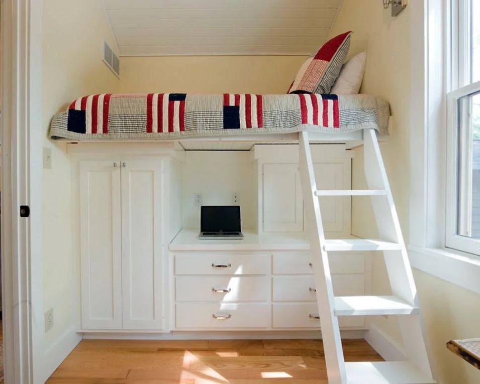 - Встроенной двухъярусной конструкции, совмещающей игровую или учебную зону со спальным местом.
