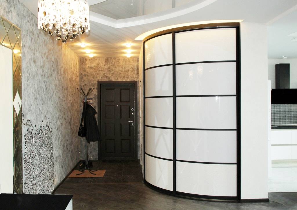 Если вы хотите видеть интересный шкаф купе в интерьере вашей прихожей, то радиусный тип то, что вам нужно. Изготовители выпускают пять видов данных шкафов: