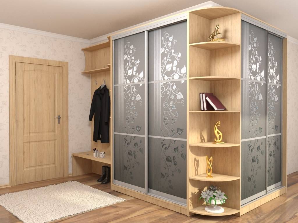 угловой шкаф идеально вписывается в небольшую прихожую. Данный вид мебели имеет раздвижные дверки, поэтому пол, стены и потолок должны быть идеально ровными. В противном случае могут возникнуть сложности с открыванием дверок.