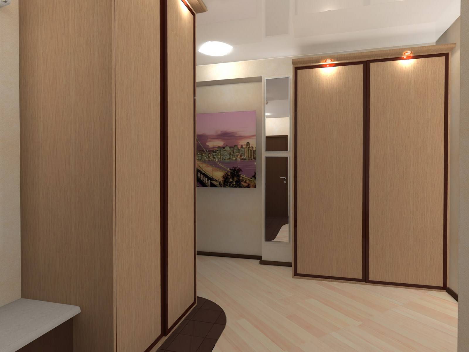 При наличии длинного коридора целенаправленно устанавливать шкаф-купе с зеркалом на распашных дверях. Благодаря такому размещению пространство даже в узком коридоре расширяется визуально в два раза.