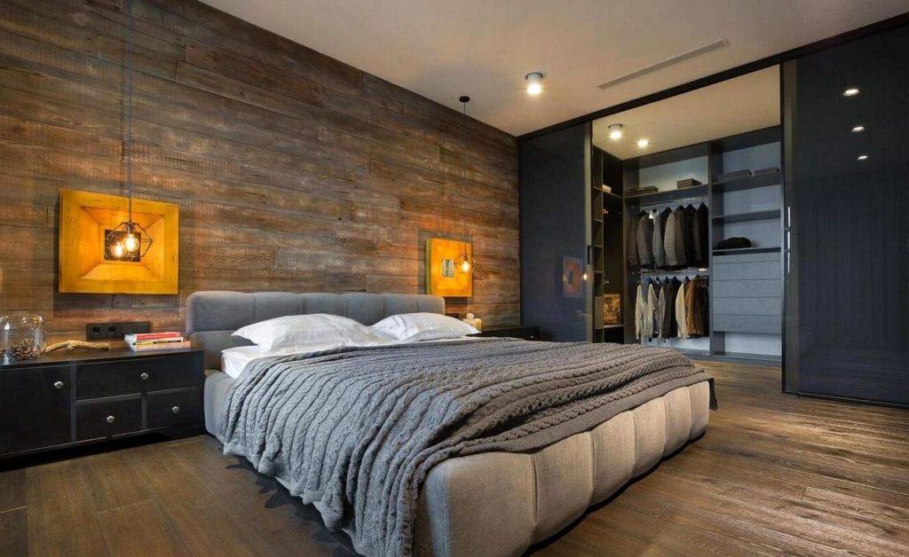 Найдется место шкафу-купе в спальне стиля лофт. Специфика лофтовской обстановки с ярко выраженной индустриализацией окружающего пространства и отсутствием перегородок, разделяющих площади, в случае обустройства спальни нуждается в некоем зонировании. На роль условной границы подойдет массивный шкаф-купе с фасадом из непрозрачного стекла или зеркальных полотен.