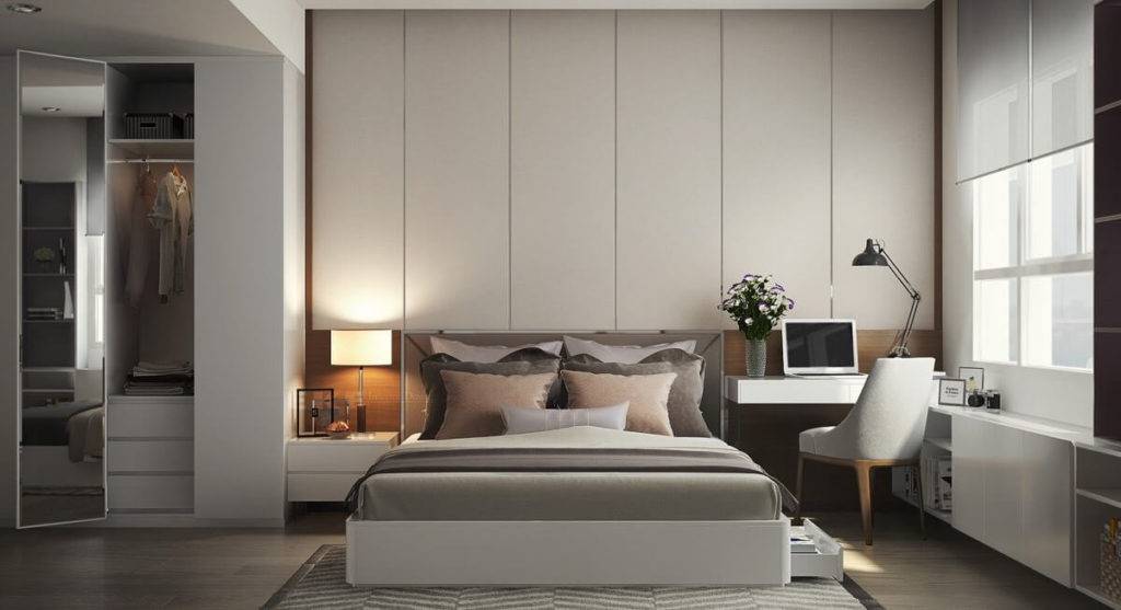 Правильный подбор декора поможет сделать предмет мебели «своим» в любом интерьере. Он будет уместен даже в минимализме, где мебель присутствует в мизерном количестве. Шкаф-купе в минималистической спальне должен иметь светлый и плоский фасад. Это могут быть белые панели или двери из стекла и зеркал. Не будет чужим здесь и пластик с фантазийными рисунками или древесной фактурой. Популярны акрилайновые фасады и глянец поверхностей. Стиль базируется на ощущении свободы пространства. Представленные варианты декора фасада шкафа полностью поддерживает стилистическую идею.