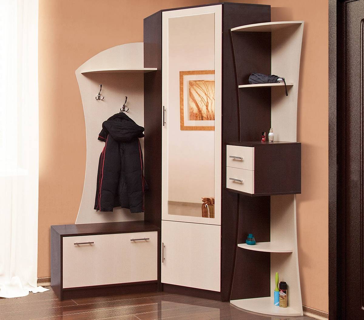 Приобрести или сконструировать самостоятельно угловую прихожую (мебельные мастерские выполнят по индивидуальному заказу любую конструкцию, оформят по желанию и потребностям, создадут удобную конфигурацию при минимальном размере);