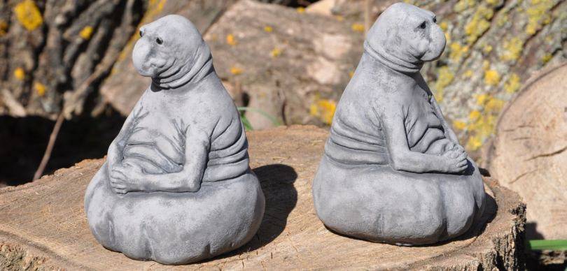 Часто натуральный камень для изготовления скульптур заменяют искусственным материалом ― бетоном. Такие изделия самые недорогие и внешне имеют сходство со скульптурами из натурального камня. Недостаток их заключается в недолговечности ― под воздействием внешней среды, они быстро теряют вид. Красиво оформить сад каменными скульптурами на годы лучше, делая выбор в пользу практичного термо- и влагостойкого материала.