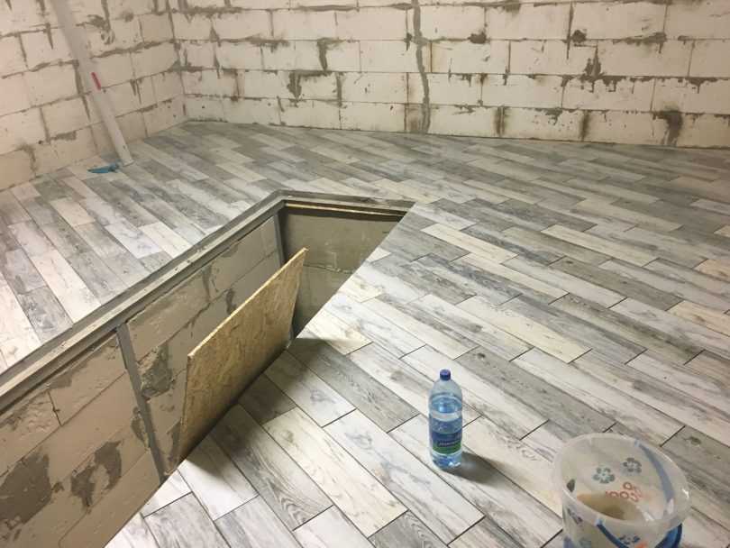 Подсыпка для пола ямы включает глиняный замок толщиной 10 см и 20 см слой керамзита, который трамбуется, просыпается песком и проливается водой. По углам вдоль ямы укладываются две дюймовые трубы, сквозь которые пропущены шнуры, концы которых выведены из ямы и временно связаны. Трубы устанавливаются в нулевой плоскости пола, вымащиваются на цементном растворе.