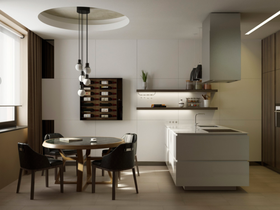 В классическом стиле ― это сдержанные цвета, мягкие неброские акценты. Классика характерна статичностью: здесь почти нет ярких зон, взгляд мягко перемещается по кухне.