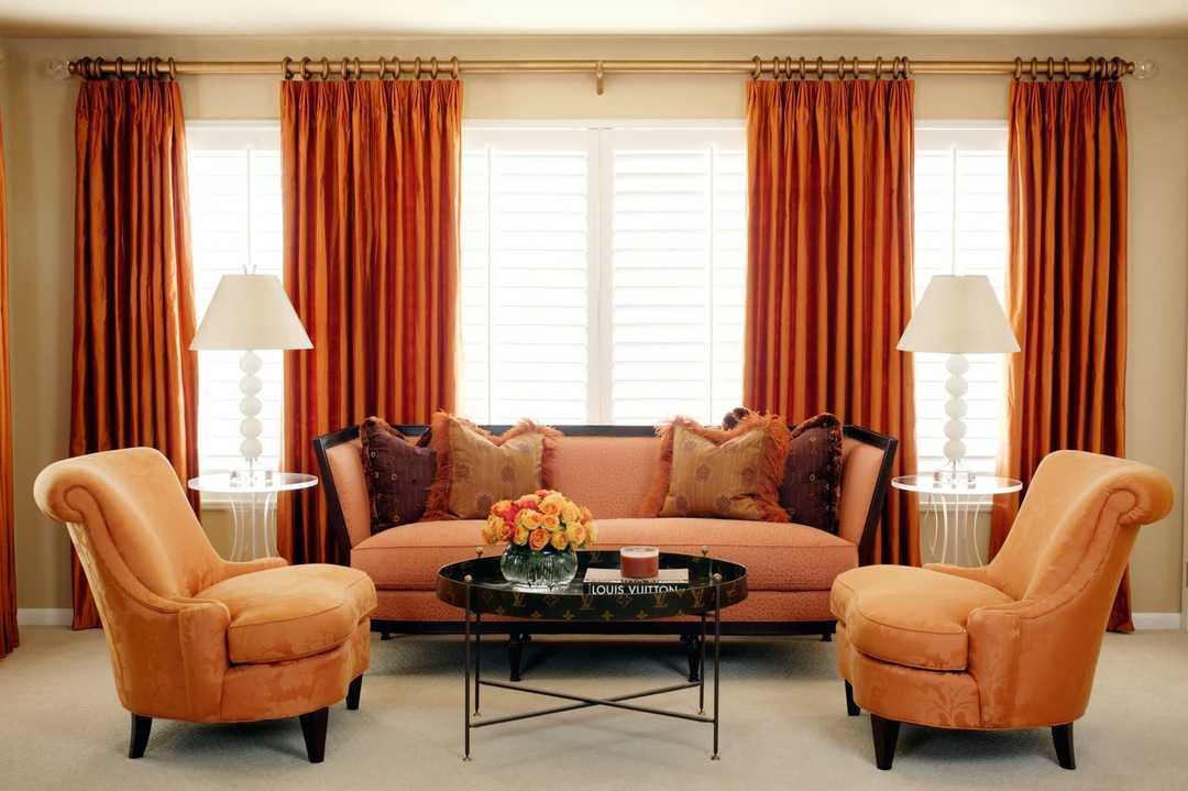 Все оттенки оранжевого, от светлых до насыщенных, прекрасно сочетаются с цветом слоновой кости и молочными оттенками (отличный вариант для отделки стен).