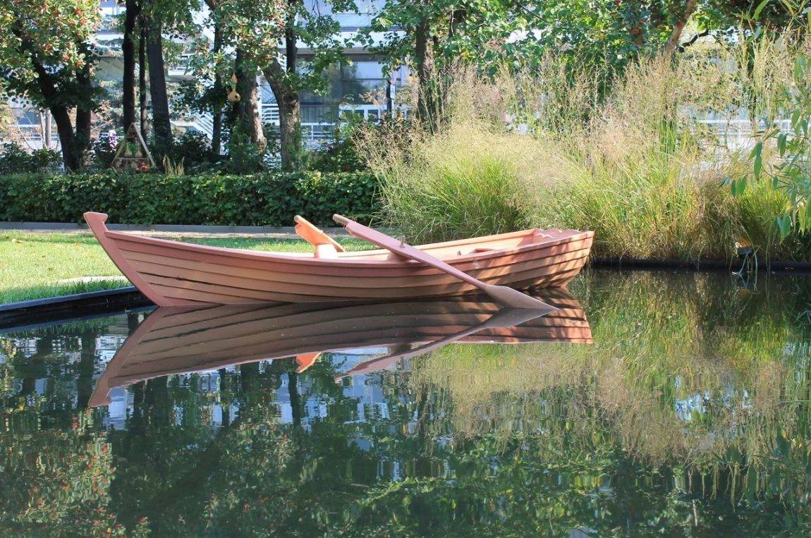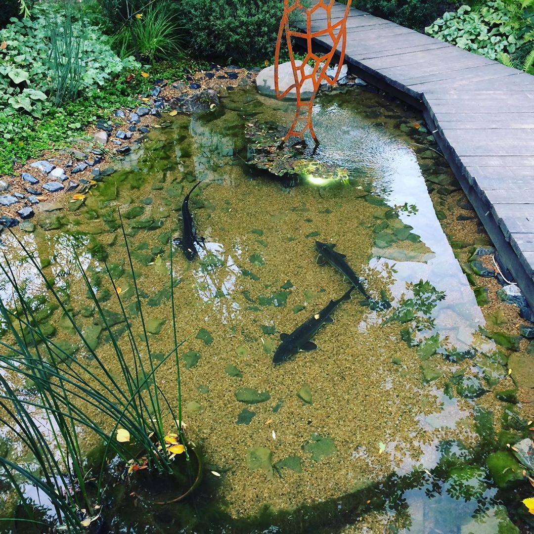 - Особенную роль играют водоемы. Желательно, чтобы был хотя бы небольшой декоративный фонтан. Если же обустроить зону искусственным прудом, будет еще лучше.