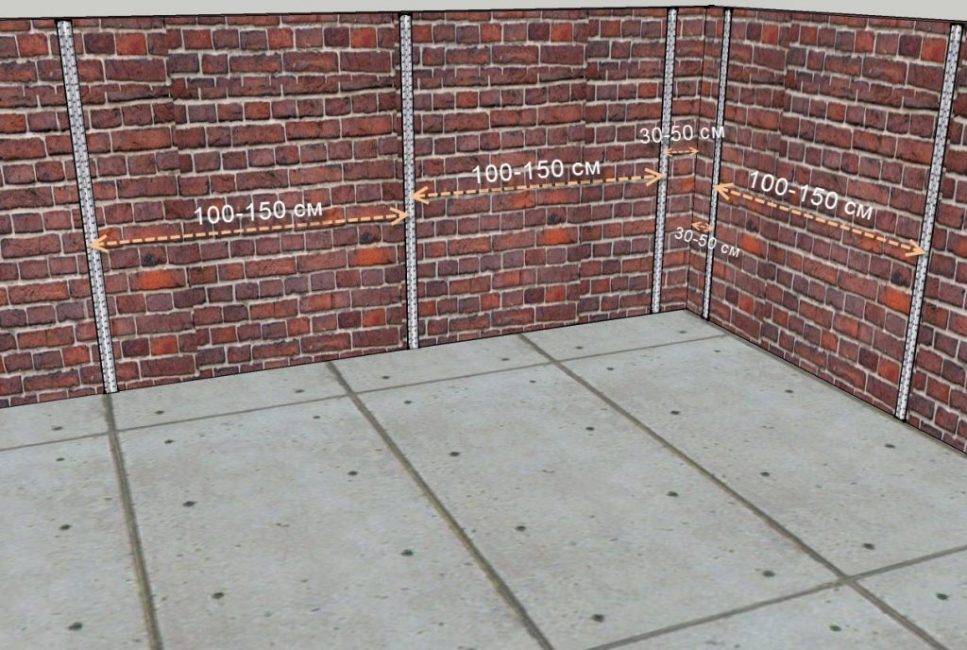 - Кирпичные стены предварительно обязательно заштукатуриваются по маякам.