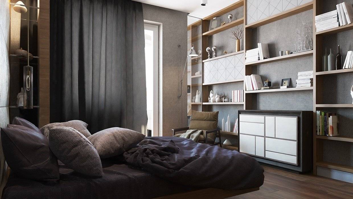 Интерьер спальни с кроватью у стеныИсточник remontbp.com