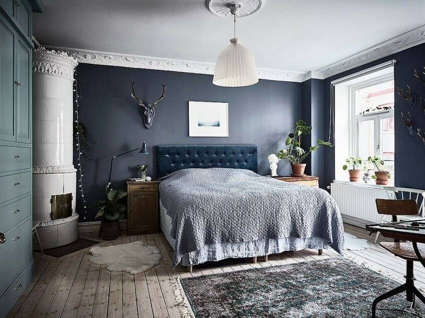 Северное влияние проявляется в деталях, поэтому полы в спальне часто украшают меховыми коврами или дорожками с этническими узорами.