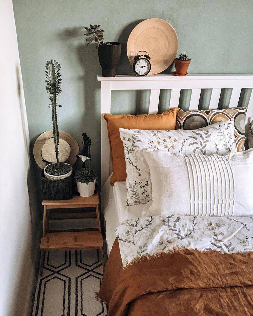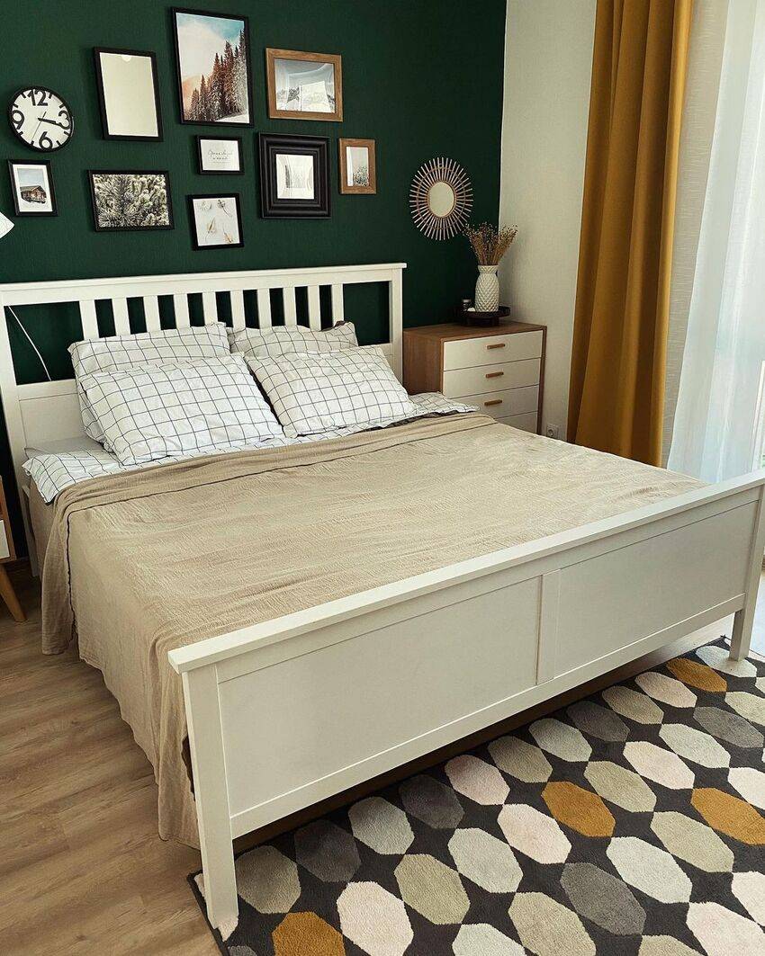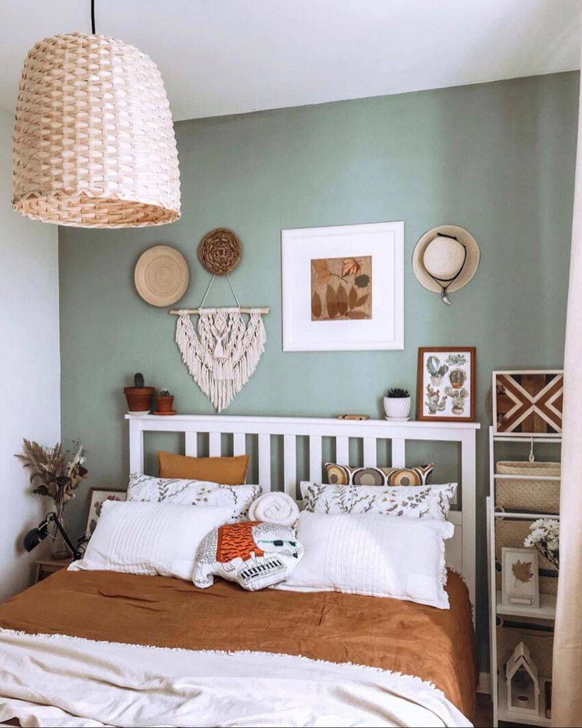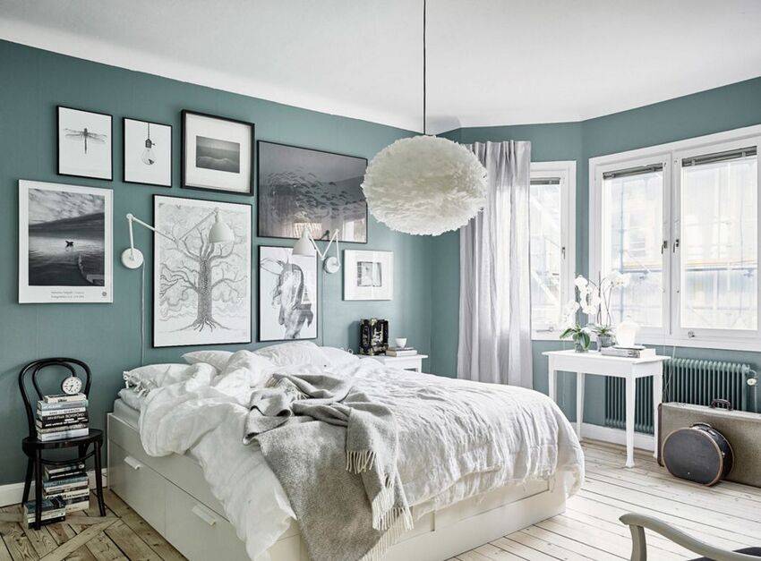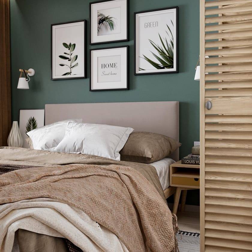 Этот естественный природный цвет отлично впишется в скандинавский дизайн спальни. Можно использовать такие оттенки как оливковый, мятный, фисташковый, сосновый, цвет лайма и другие.