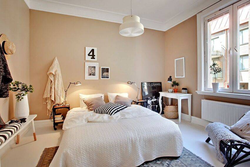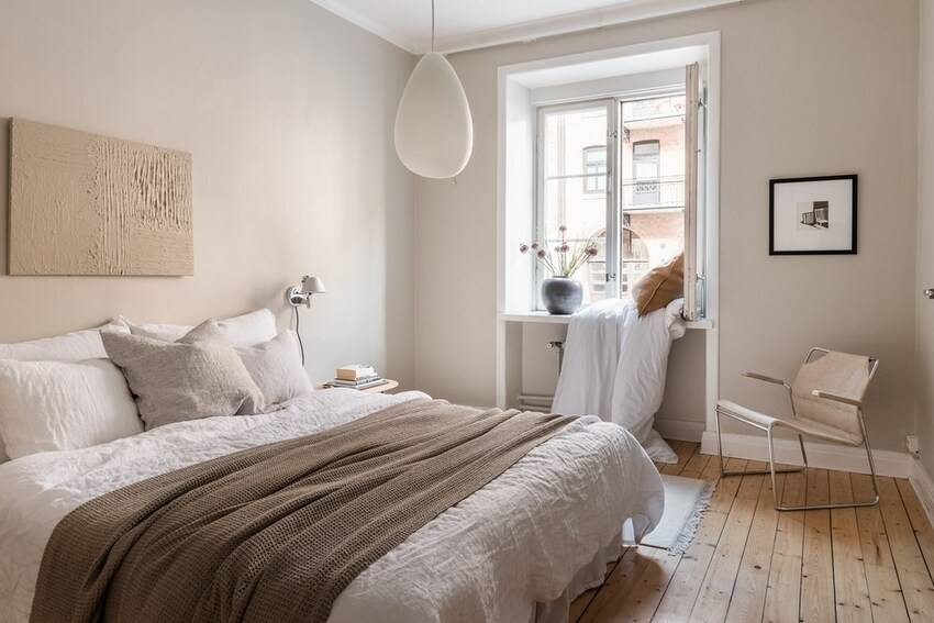 Бежевая спальня в скандинавском стиле
