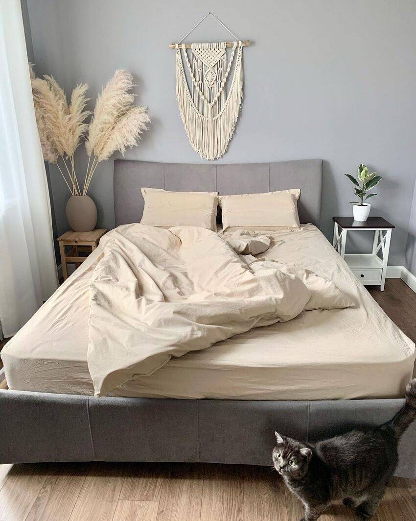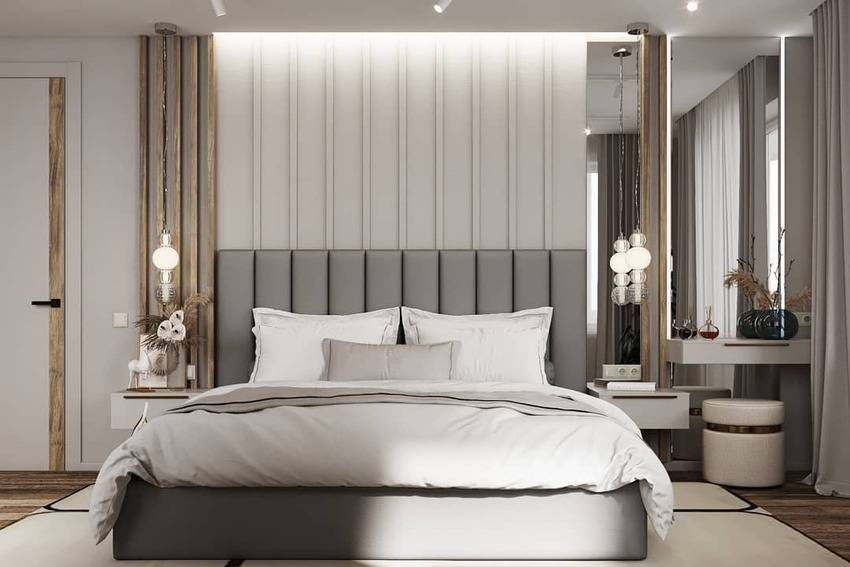Сейчас в тренде отделка спален в серо-бежевых оттенках, которые получили название грейж (greige).