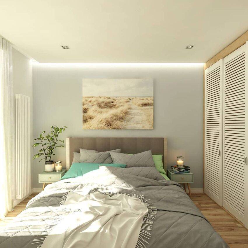 Стиль идеально подходит для спален небольшой площади