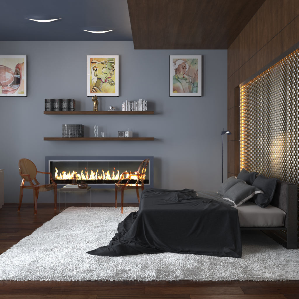 Чёрный цвет, не смотря на некую мрачность и глубину, прекрасно очертит форму комнаты и создаст уют. В спальнях с небольшой площадью дизайнеры советуют подчеркнуть общую композицию при помощи нескольких чёрных предметов. Для больших помещение подобный цвет может использоваться для оформления одной или пары стен. Чередование тёмных и светлых серых оттенков позволит расширить пространство, а дополнении в виде нескольких ярких деталей создадут очень интересный визуальный эффект.
