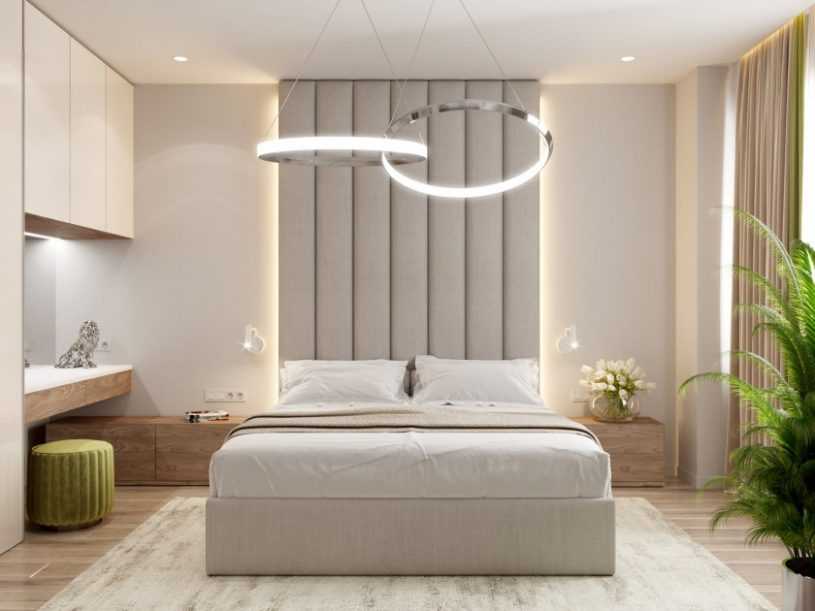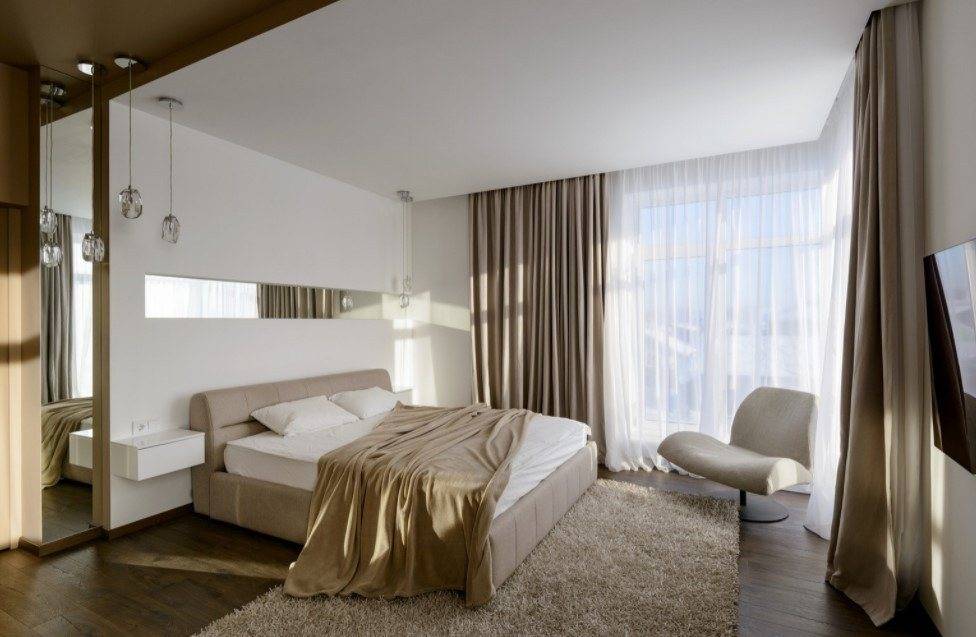 Интерьер спальни в нежных тонах, выполненной в современном стиле выглядит в любое время года свежо и опрятно. Помимо белого, спальню в светлых тонах в современном стиле можно оформить в бежевых оттенках, они приятны для глаз, так как относятся к нейтральной цветовой гамме.