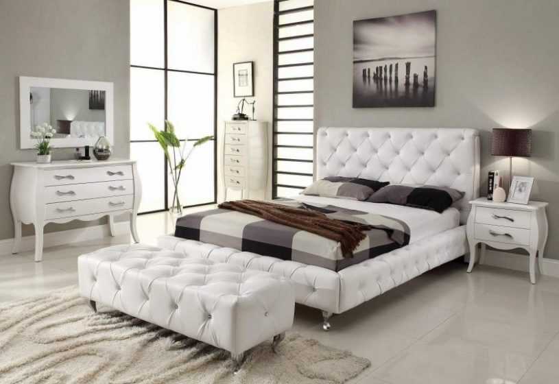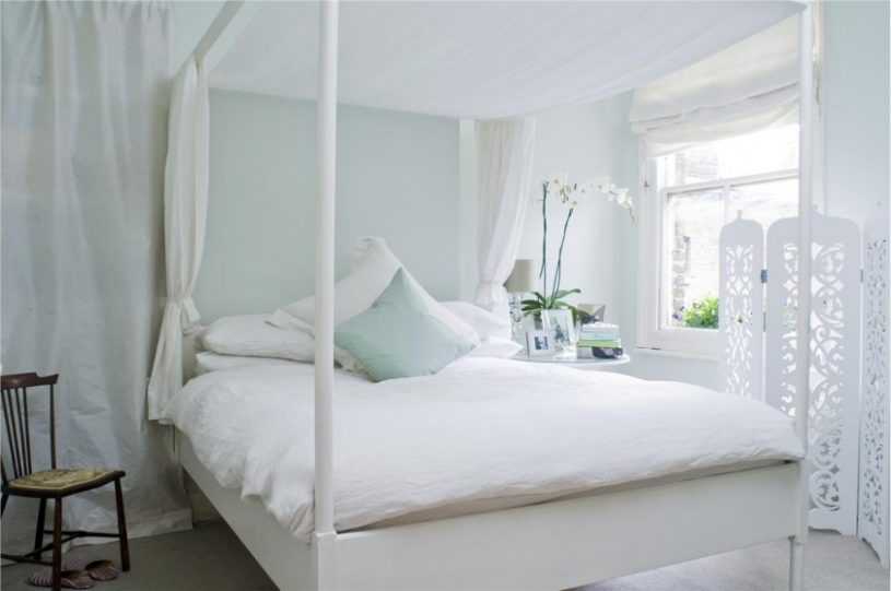Резная мебель, окрашенная эмалью в тон слоновой кости, создаст величественную атмосферу дворца. Изголовье кровати может быть оббито мягкой кожей. Окна следует закрывать портьерами из парчи, бархата, атласа в тон общего оформления. Такие же ткани подойдут и для балдахина. Покрывало может быть жаккардовым, с мерцающими рисунками. Обилие света в «драгоценном» обрамлении превратят обычную маленькую комнату в поистине королевскую опочивальню.