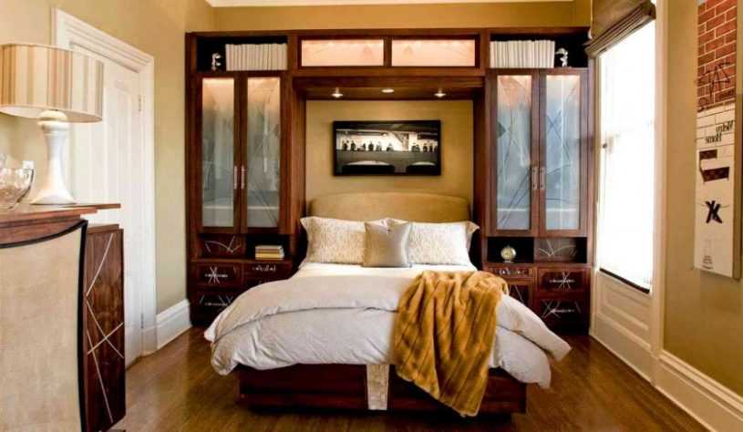 - При выборе мебели нужно использовать только необходимый минимум: кровать, тумбочка и компактный шкаф-купе.