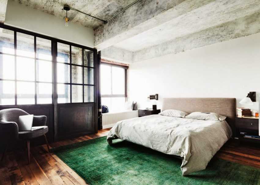 Разумнее потратиться на роскошное покрывало ручной работы, чем приобретать дешевый ширпотреб. Дорогие вещи оправдают себя в долгосрочной перспективе и сразу определят направление дизайна. Приветствуется использование небольших толстых и лохматых ковриков, старинных кресел с бархатной обивкой, шелкового белья. Сочетание изысканных тканей с грубыми текстурами стен и пола – визитная карточка лофта.