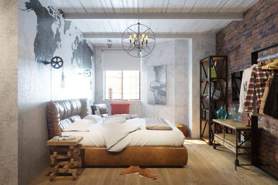 Маленькая спальня в стиле лофт: полезные дизайн-хаки