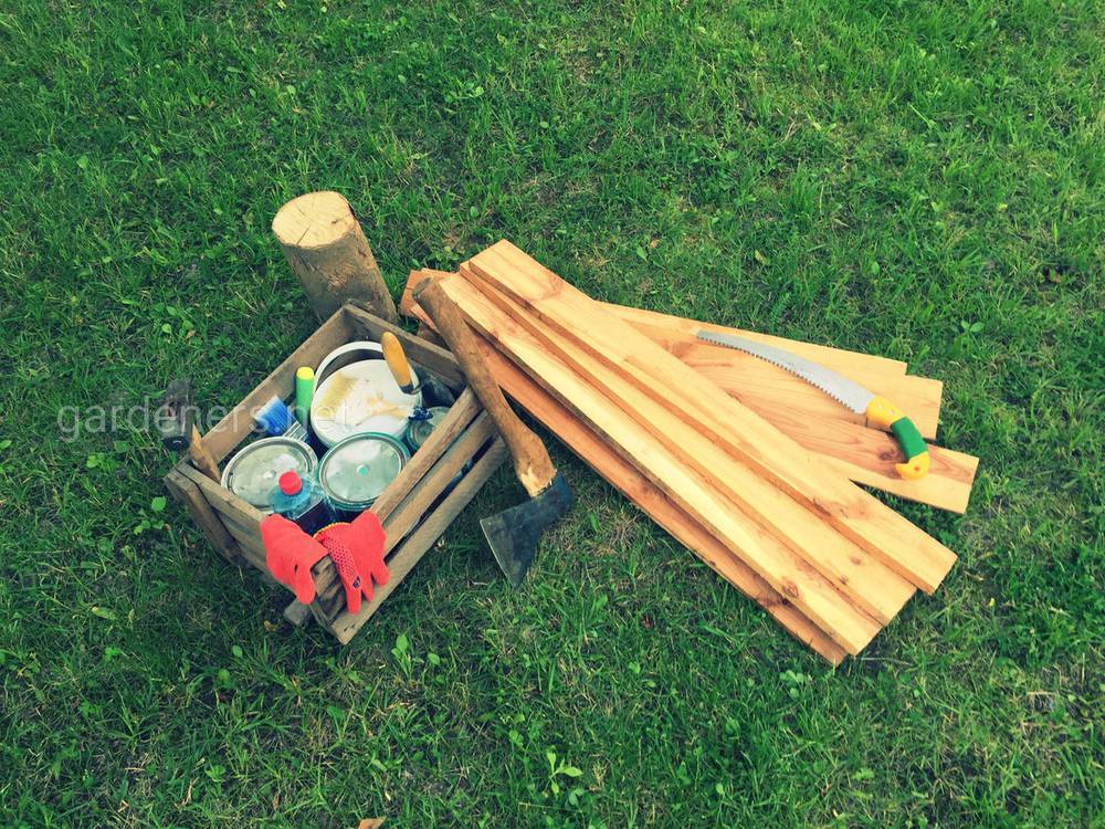 Материал и инструменты для изготовления садовой скамьи из дерева
