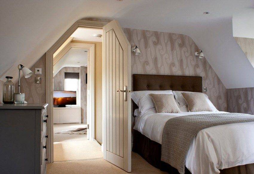 Межкомнатная дверь нестандартной формы в мансардном помещении