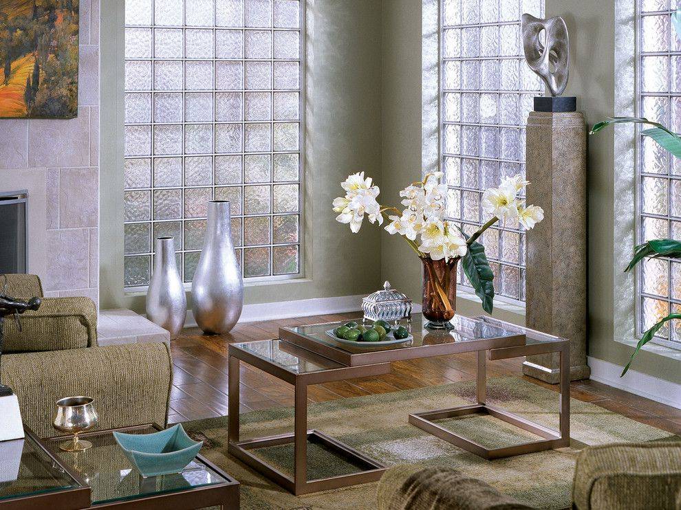 Если заменить одну из стен или ее часть стеклянным блочным декором, можно зрительно расширить пространство. За счет проникновения света из соседних комнат значительно улучшится освещение. В маленьких комнатах лучше использовать одинаковые по фактуре и цвету детали.