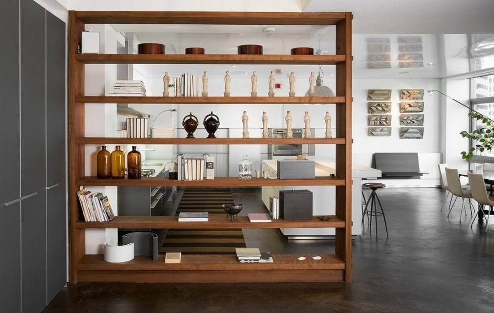 Несмотря на то, что все стеллажи имеют схожие функции, существует несколько видов. В первую очередь стоит отметить стационарные конструкции. Зачастую они массивные, очень прочные и надежные. Чаще всего именно их выбирают для зонирования помещения, так как такие стеллажи устойчивы и без демонтажа их невозможно переставить