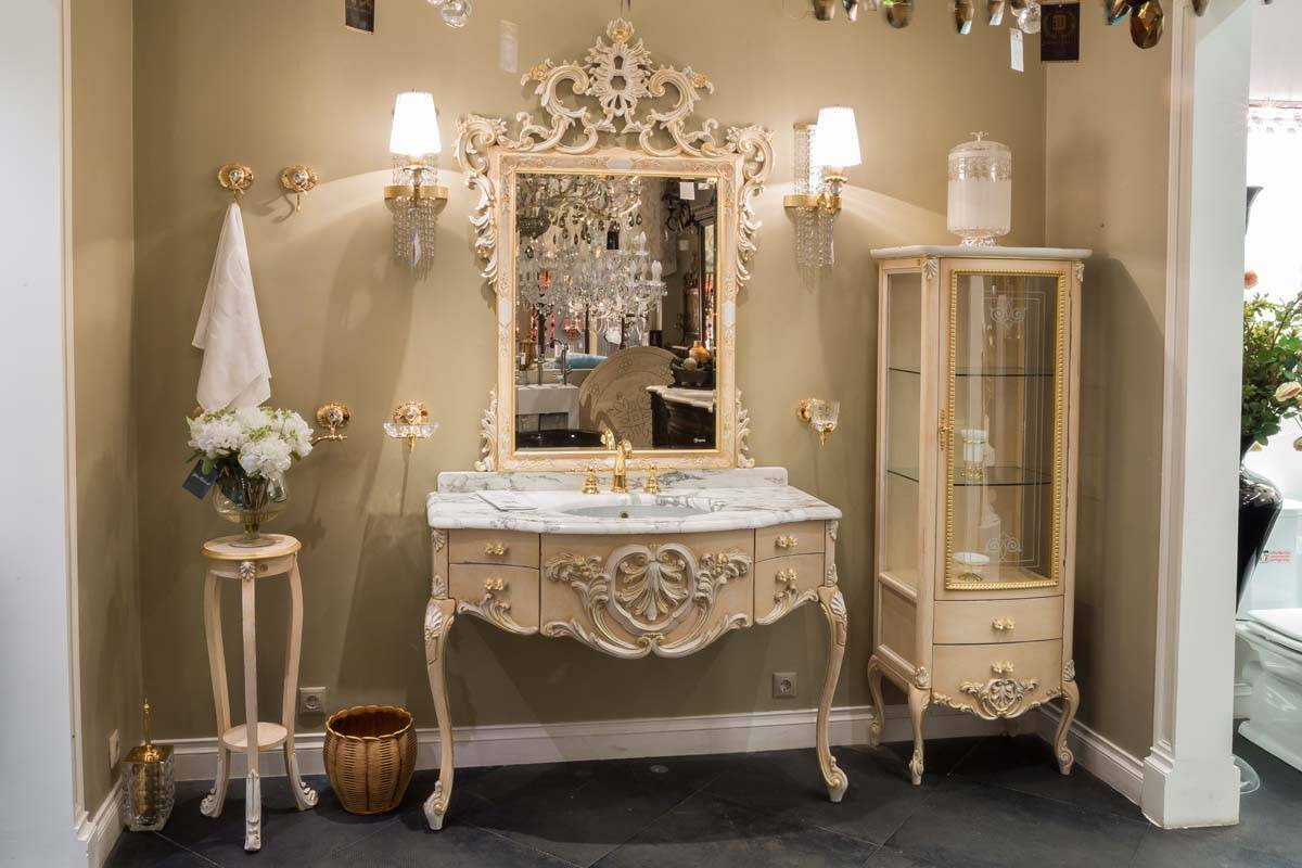 Комплект мебели для обустройства прихожей — стандартный: шкаф-вешалка, зеркало, небольшая подставка для тростей и зонтов, столик. Всё вместе это объединяется в единый комплект. Все изделия должны быть массивными, резными, украшенными позолотой или бронзовыми вставками.