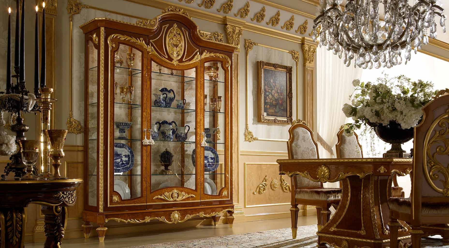 Декор расставляется в пространстве гармонично, не перегружая какой-то один угол или сегмент комнаты. Все вещи – напольные, настольные вазы, статуэтки, фарфоровые сервизы, подсвечники и канделябры оформлены позолотой, рокайлями, завиточками – они говорят, но не кричат о роскоши. На комод, камин, туалетный столик можно поставить часы в бронзовом корпусе, изображающие влюбленную пару, девушку, даму или амурчиков. Большая расписная ваза может украсить холл, лестницу, ведущую на второй этаж. В посудном шкафу за застекленными дверцами в гостиной или столовой разместите сервиз из тонкого фарфора с росписью.