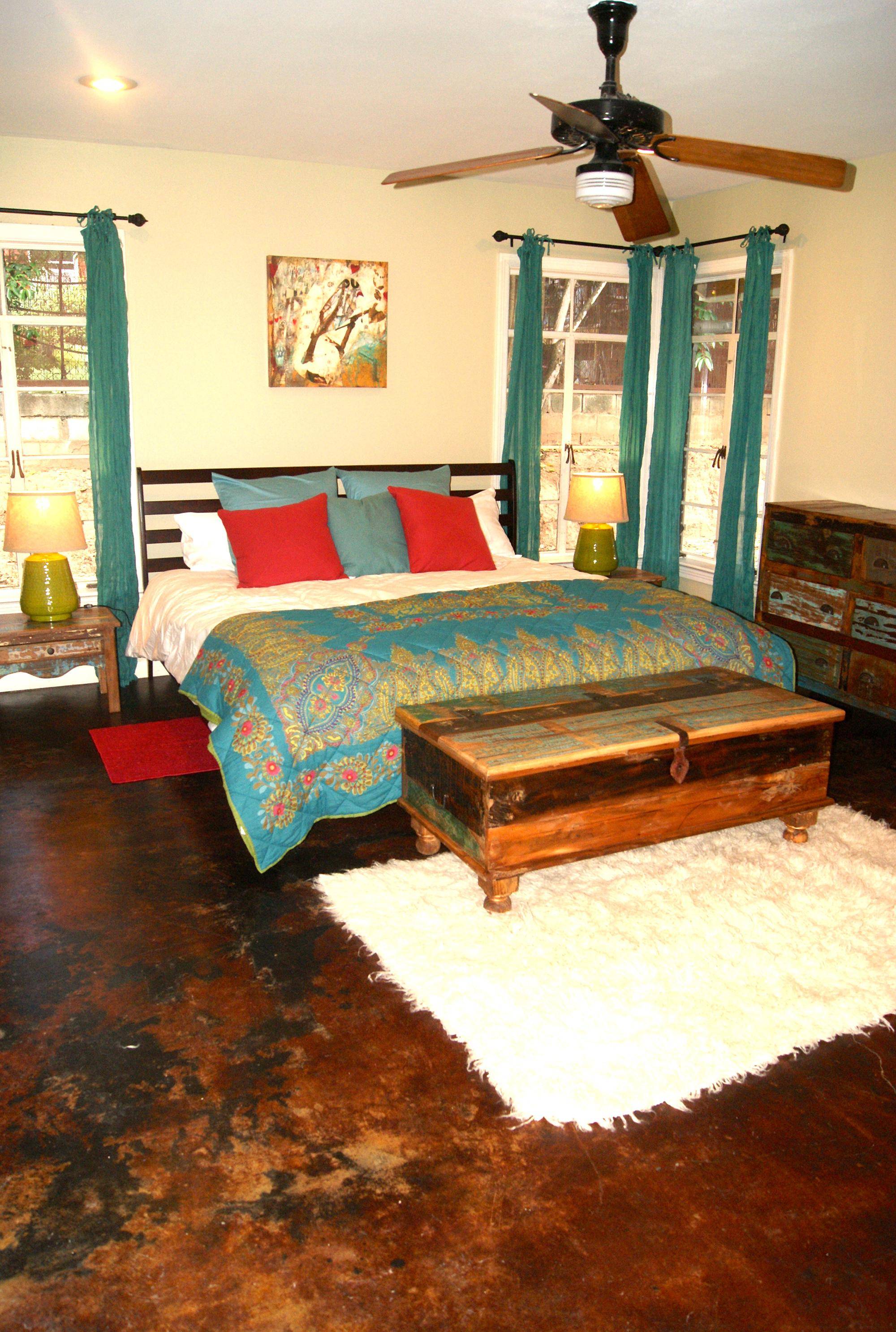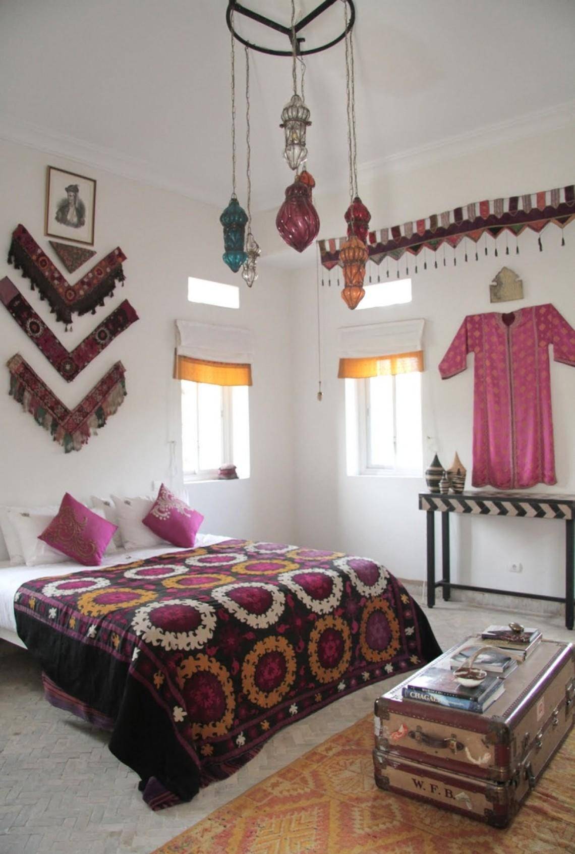 Спальня в стиле бохо с сундуком