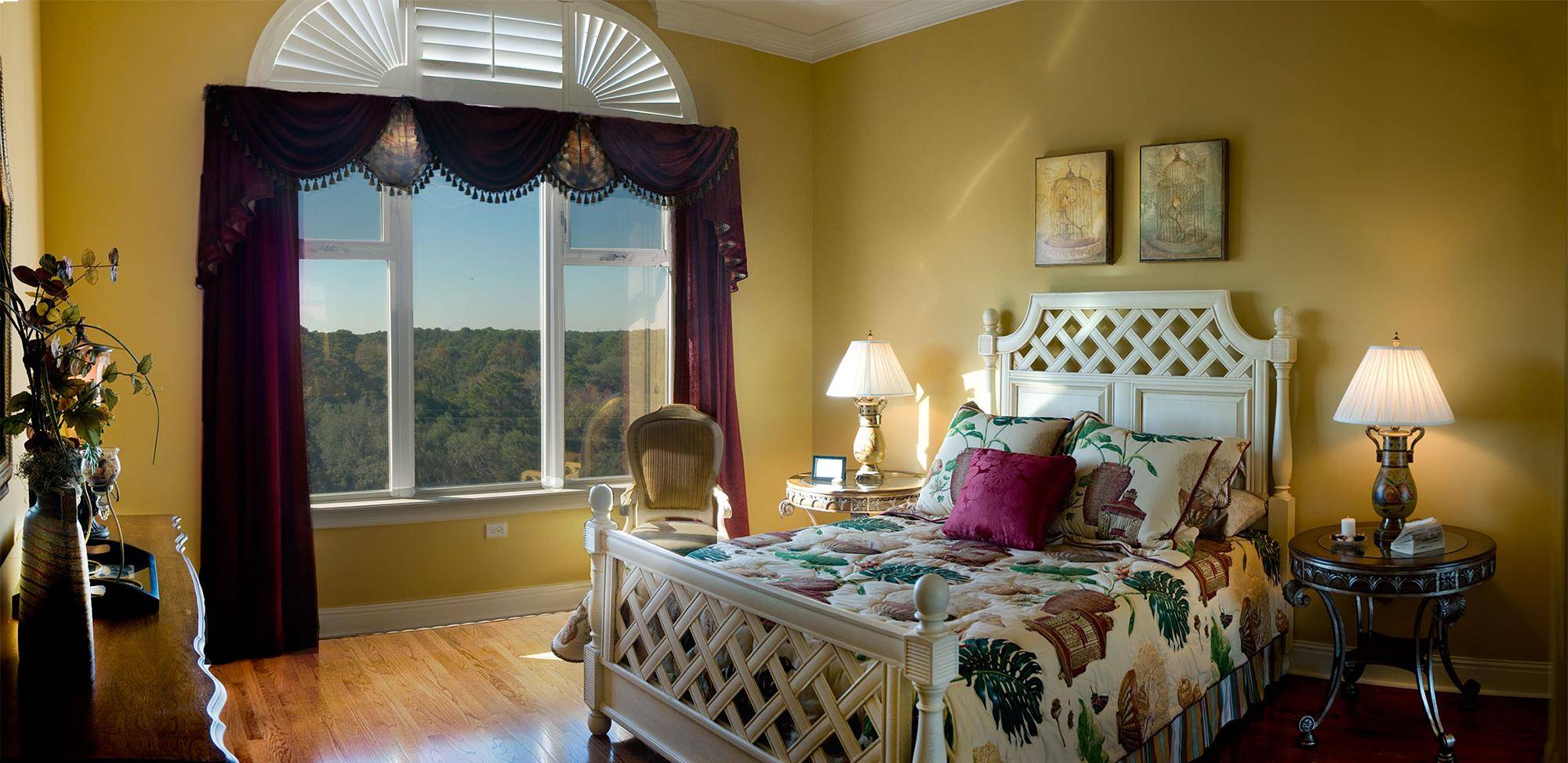 Спальня с большим окном в бохо стиле