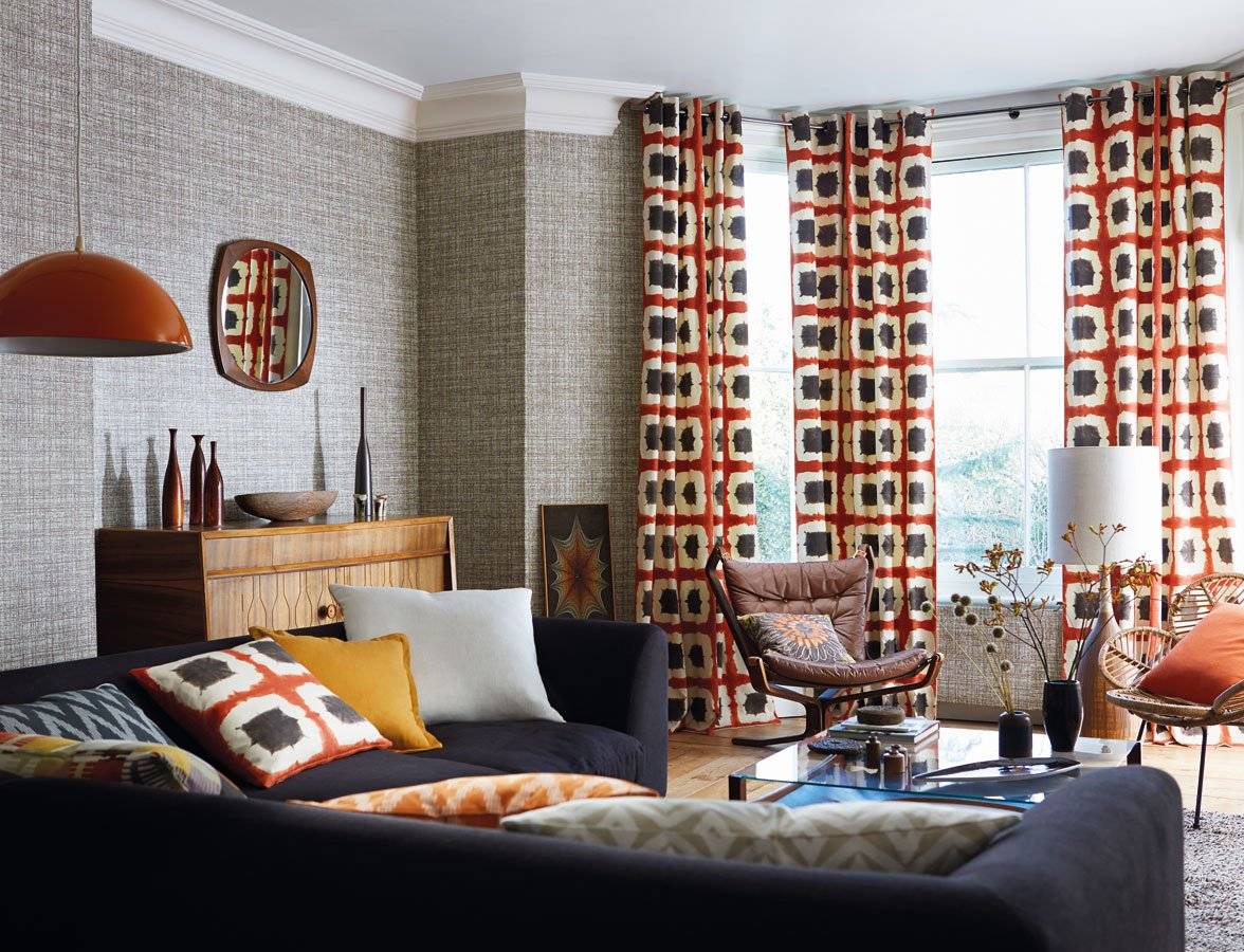Разнообразие принтов и узоров на текстиле в интерьере гостиной