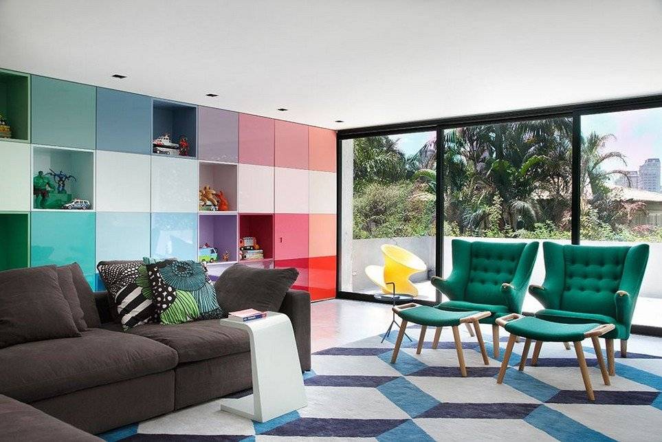 В интерьере обычно используют 1—2 основных цвета для больших поверхностей; один цвет для мягкой мебели, подушек, пледов; 1—2 цвета для акцентов: подушек, светильников, картин. Пять цветов — максимум, больше цветов использовать нельзя: интерьер будет пестрым и хаотичным.