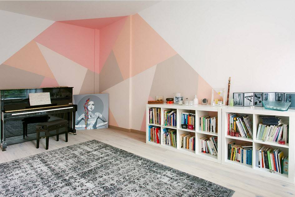 - Стены можно отделать обоями, тонированной штукатуркой или краской — все эти материалы есть в любом строительном магазине. Если хочется добавить красочности, для каждой стены выбирается свой оттенок: соседние тона или контрастные (красный, оранжевый, лаймовый, вишневый).