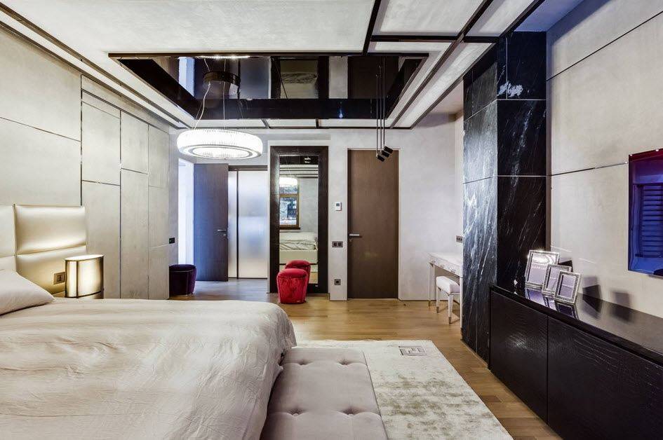 Поэтому, проектируя дизайн интерьера в данном стилевом направлении, немаловажно предусмотреть место для гардеробной и использовать модульную и трансформирующуюся мебель
